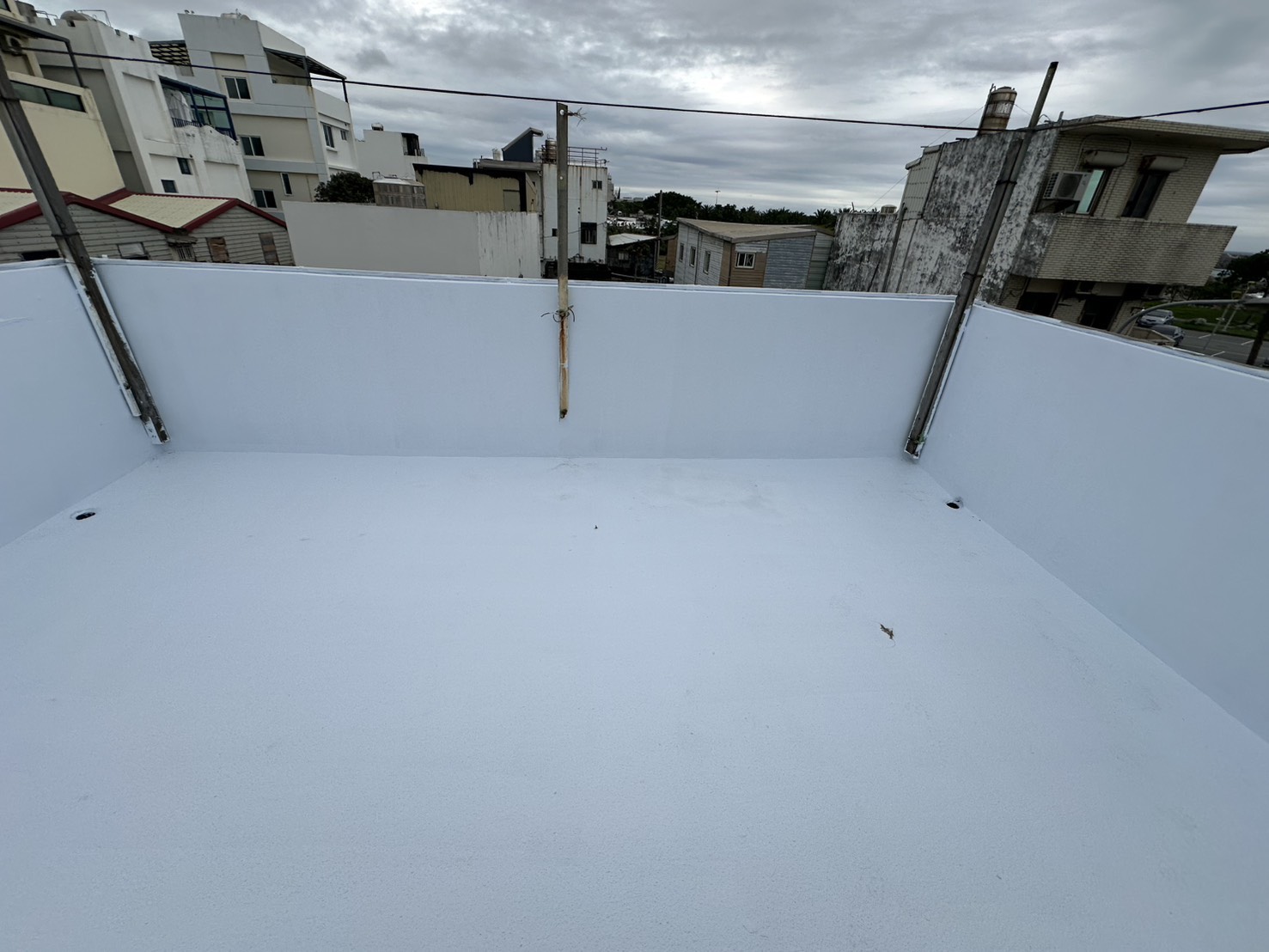 屋頂施作PU防水後加上隔熱塗層,達到防水與降溫雙重效果,有效減少室內悶熱與屋頂老化問題,提升建築整體耐候與舒適度。